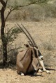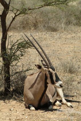 The oryx is a handsome ashy dry-country antelope with straight, backward-sweeping horns that grow longer than one metre. It can go without water for weeks, obtaining all it needs from the plants it eats. It is present but seldom seen in Tarangire, Mkomazi and the northern Serengeti.