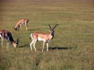 Grant’s gazelle is much larger than Thomson’s, has longer horns, and lacks a black side stripe. It occurs alongside Thomson’s gazelle in the Serengeti ecosystem, but its range also extends southward as far as Ruaha NP.