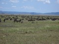 Also known as the brindled gnu, this legendary antelope, with its off-black coat and flattened horns, look a bit like a buffalo from a distance. At close quarters, however, the wildebeest is much slighter than a buffalo, its elongated face giving it a rather pensive expression, and it has a distinctive shaggy beard. It is the main mover behind the world’s greatest mammal migration, which takes place in the Serengeti ecosystem and is comprised of some two million wildebeest as well as thousands of but also zebra, gazelle and eland.