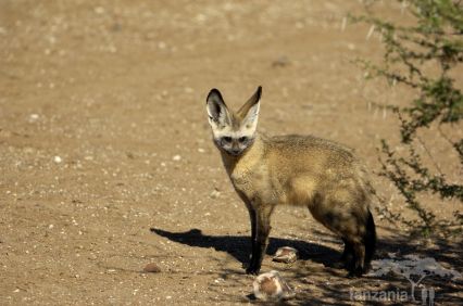 - The insectivorous bat-eared fox is slightly smaller than a jackal, and easily identified by its huge ears and black eye-mask. Common in the Serengeti-Ngorongoro, it’s most likely to be seen during the denning season (Nov/Dec).