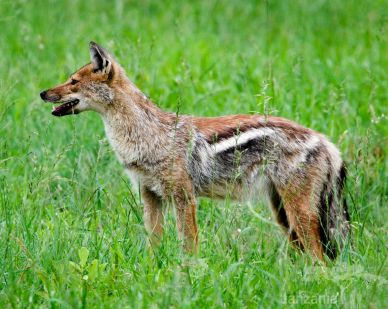 Tanzania’s three jackal species all stand about 40cm tall at the shoulder, and are placed in the genus Canis alongside the domestic dogs they closely resemble. Most widespread is the black-backed jackal, whose ochre coat is broken by a flecked black saddle. The side-striped jackal has an indistinct pale vertical stripe on each flank and diagnostic white-tipped tail, while the duller common jackal is a northern hemisphere species whose range extends into parts of Tanzania bordering Kenya,