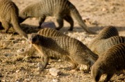 These are the most prolific of African carnivores, and several species are likely to be seen on safari. Most are characterised by a slender build, narrow muzzle, long tail, small eyes and ears, non-retractable claws, and uniform grizzled coats. It is popularly assumed that mongooses feed mainly on venomous snakes, but most species are as likely to eat rats, insects, molluscs, crabs and any other small terrestrial creature.