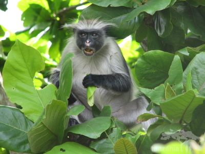 - Kirk’s red colobus, distinguished by its unkempt white crest (recalling a colobine Einstein), is endemic to Zanzibar Island. This endangered species can be observed closely in Jozani Forest Reserve, the main stronghold for the estimated population if 2,000.