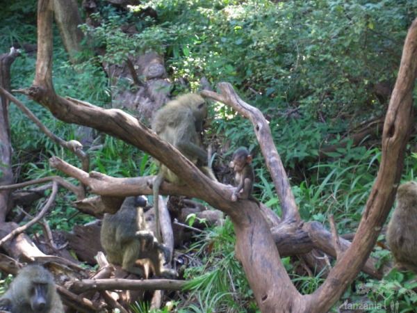 The most terrestrial of primates, baboons, can be distinguished from other monkeys by their greater bulk (up to 45kg), inverted U-shaped tail and doglike head. Two species are present in Tanzania: the bulkier green-brown olive baboon of the northwest and the slighter yellow-brown yellow baboon of the south and east. Both are versatile omnivore, and are at home in almost any habitat other than desert or rainforest interiors.